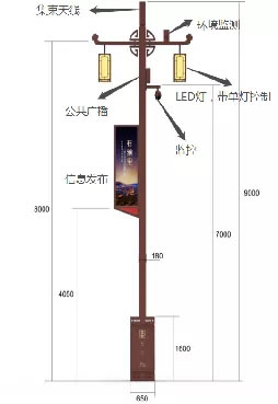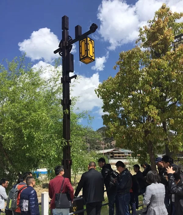 路灯适用于特色小镇,具有典型的古镇风格,风格可变,多样,可单灯,可双灯,功能齐全。主杆采用铝合金制作,铝合金四面带槽,用T型螺栓进行连接。以“安全适用,经济合理、外观美观,安装方便,增设备便捷”的设计理念进行设计、制作。