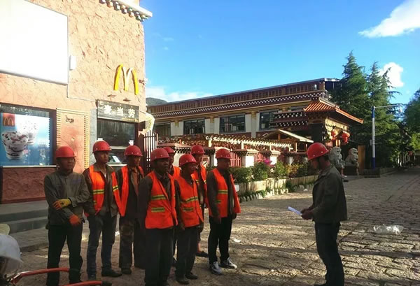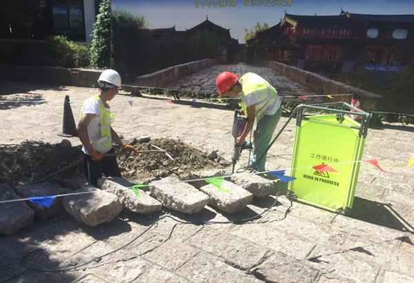 束河管道交叉复杂,且路面是青石路面,石块大、边缘呈不规则形态,开挖难度较大,采用电力开挖势必对路面造成无法修复的伤害。但人工开挖成本高,在线观看午夜福利量大,施工困难。在经过反复试验确定后全部改为人工开挖,开挖深度、宽度严格按照设计图纸执行,力保安全第一。挖开的青石板由工人清理干净、按顺序编号,施工时按照编号恢复原样恢复,最大限度上减少了对古镇地面的破坏。